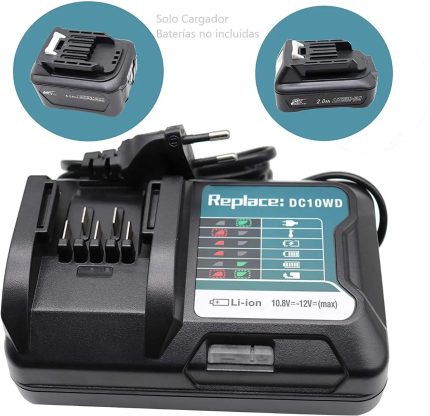 Voltaje de salida: 10.8VVoltaje de entrada: 100V-240VFrecuencia de entrada: 50/60HzPotencia: 22WPara batería de litio Makita 7.2 V/10.8VCantidad: 1 ud.
