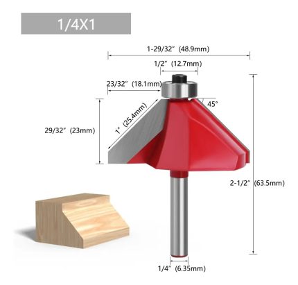 1pcs Fresa Madera Copiadora Angulo 45° Toma 1/4×1° con Chaflán