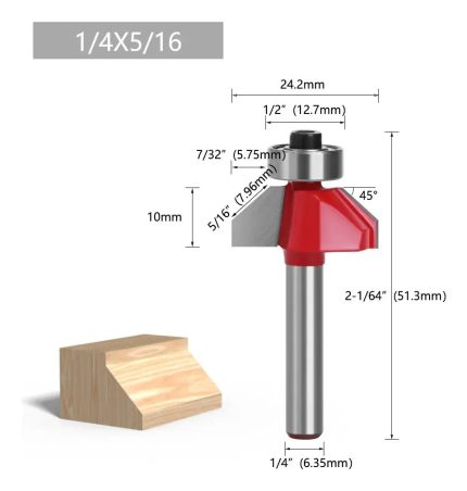 1pcs Fresa Madera Copiadora Angulo 45° Toma 1/4×5/16 con Chaflán