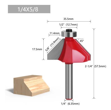 1pcs Fresa Madera Copiadora Angulo 45° Toma 1/4×5/8 con Chaflán