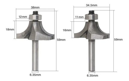 4 Unid/set 1/4 “6,35 MM fresa de vástago radio de tallado de madera redondo sobre borde formando broca fresadora para