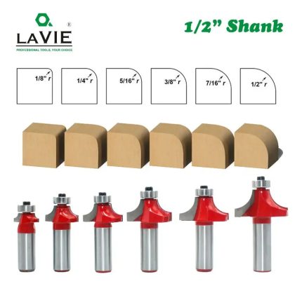 7 Unid/set 1/4 “6,35 MM fresa de vástago radio de tallado de madera redondo sobre borde formando broca fresadora para