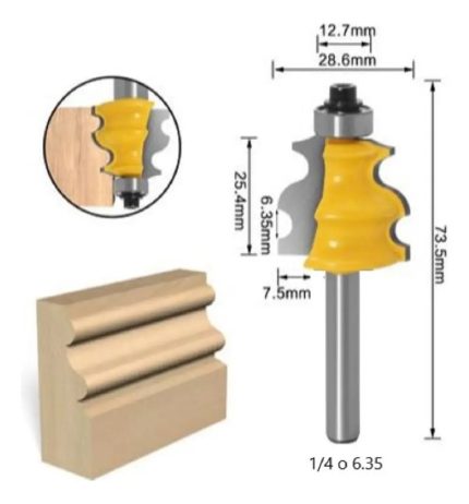 Fresa Madera Moldura Zócalo Marcos Vástago 1/4 X 25.4.mm