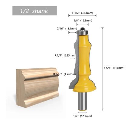 Fresa Madera Moldura Zócalo Marcos Vástago 1/2 x Bala