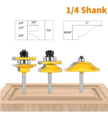 Fresa para fabricación de Marcos de Puerta ensamblados3 fresas con Vástago de 1/4 o 6.35 punta de carburo