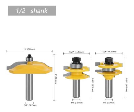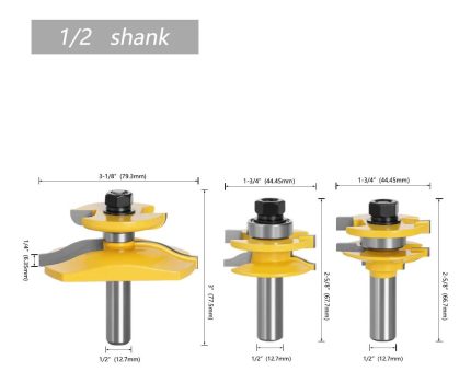 3 unids set 1/2 12MM cortador de fresado de vástago de entrada de tallado de madera enrutador de puerta de
