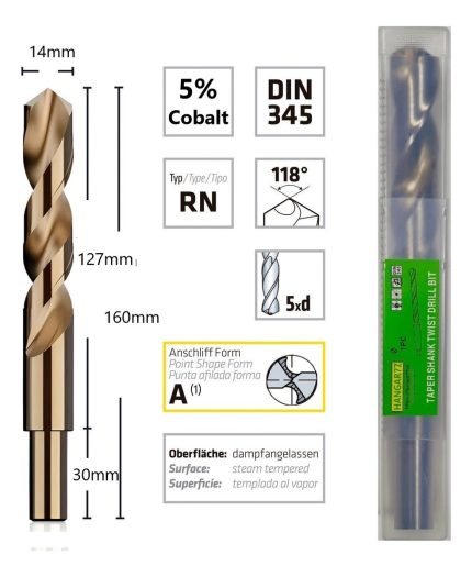 Broca Cobalto 14mm 1 Pcs Hss Al 5% C/reducción. De 13mm