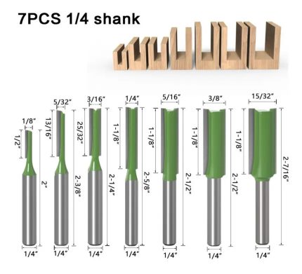 Fresa Madera Recta Vástago 1/4 7unidades Dif Medidas