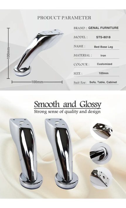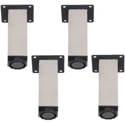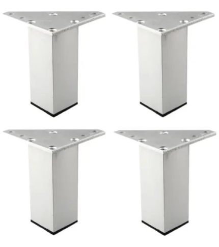 4 Patas Estilo Cuadrada. 10cm de alto por 4 de Diámetro, en Acero inoxidable Bruñido y base de pvc.