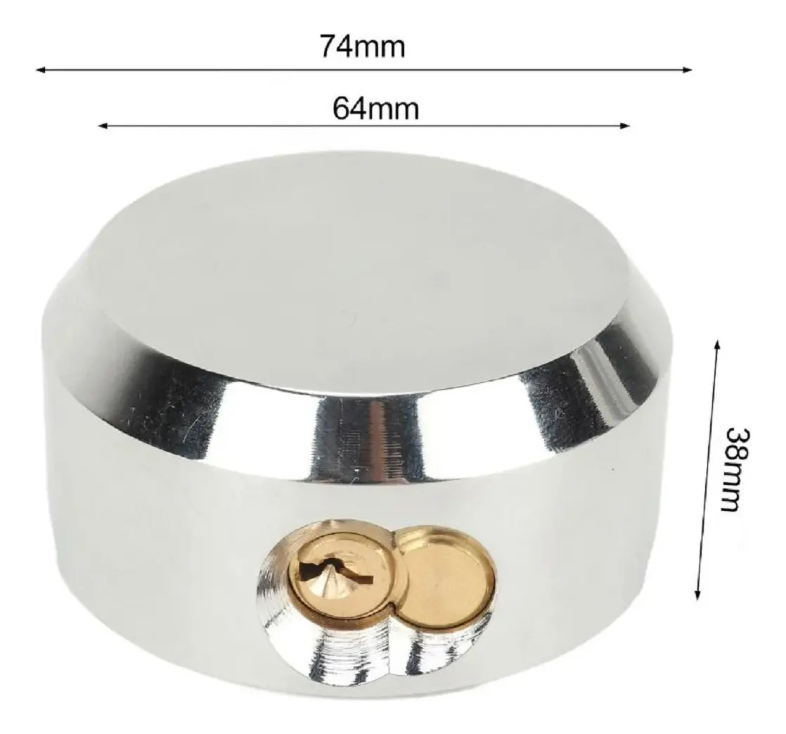 Diseño oculto: cerradura con forma de disco que oculta y protege eficazmente el núcleo de la cerradura, lo que hace que sea más difícil de abrir y romper, evitando robos y vandalismo.