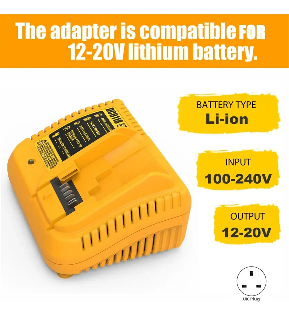 Cargador Para Dewalt 10.8v, 12v, 14v A 20v Dcb118 60w Max 3a