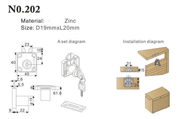 Cerradura O Chapa Puerta Corredera Armario Cilin. 19mm 1un