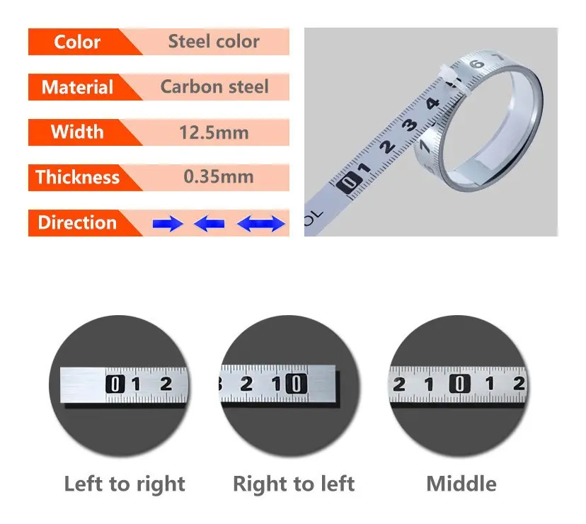 Cinta Métrica Adhesiva Metálica Izquierda Cero Derecha 4 metro de Largo