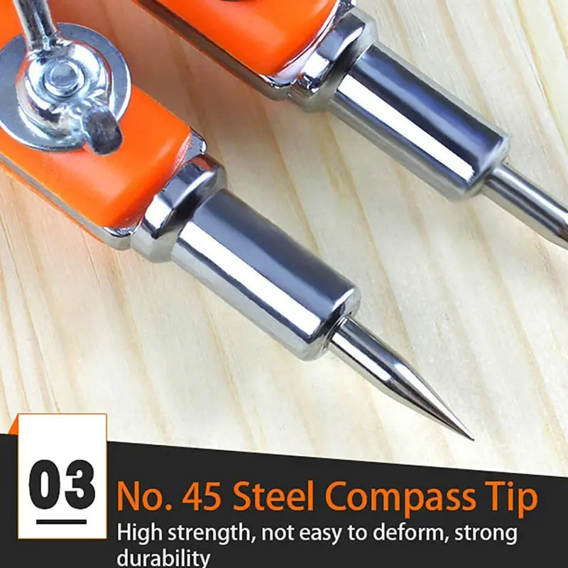 Material: mango de polipropileno, punta de brújula de acero 45 y aleación de zinc