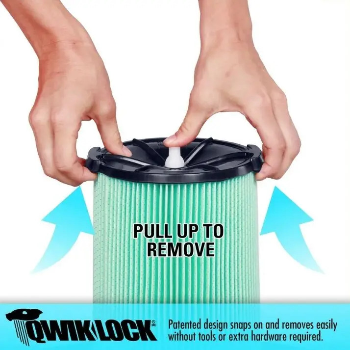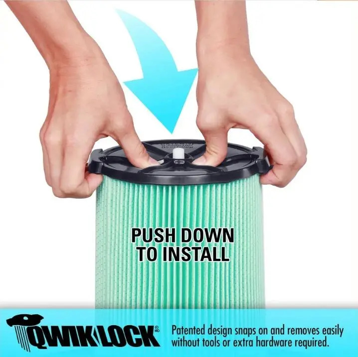 El filtro alérgeno reemplazable de 5 capas RIDGID se fabrica con material con clasificación HEPA y elimina un 99 % de todas las partículas en suspensión de 1/2 micrones y superiores. Los alérgenos limpiados del aire pueden incluir partículas como caspa de las mascotas y polen. Con su función Qwik Lock patentada, simplemente se instala o desinstala en la aspiradora para una limpieza fácil.