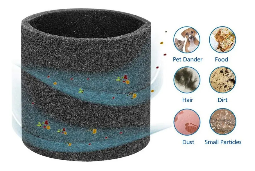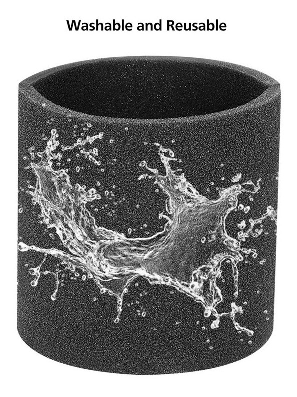 El filtro de la manga de espuma es lavable y reutilizable, se puede limpiar con agua, reutilizable después del secado.