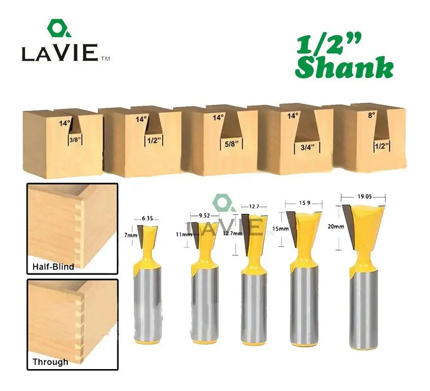 Fresa Madera Cola De Milano Vástago 1/2 5 Un. Dif. Medidas