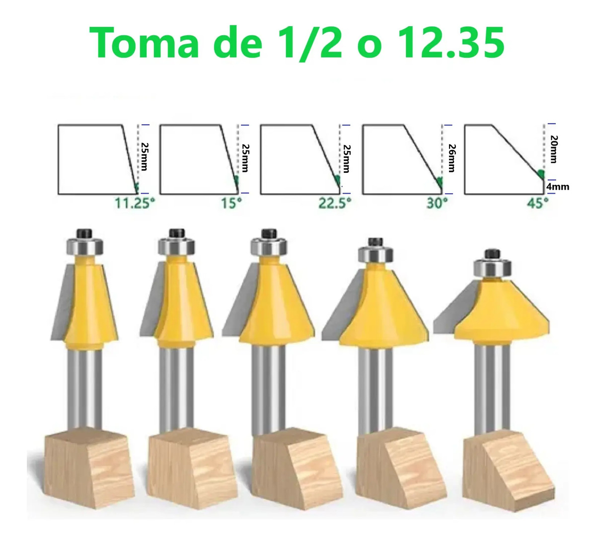 Fresa Madera Copiadora Angulo 11.25 A 45 Grados 5pcs Toma 1/2