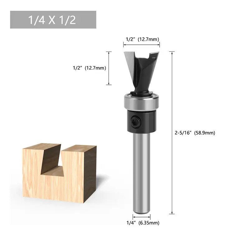 Fresa Madera Copiadora Cola De Milano Vástago 1/4 X 1/2 C.t.