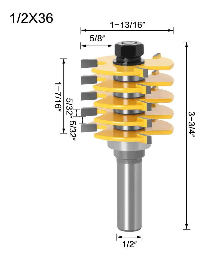 Broca de enrutador de juntas de caja 1 pieza-Ajustable 5 Blade1/2