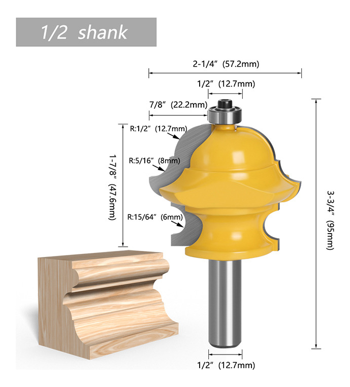 Fresa Madera Moldura Zócalo Marcos Vástago 1/2 Travertino