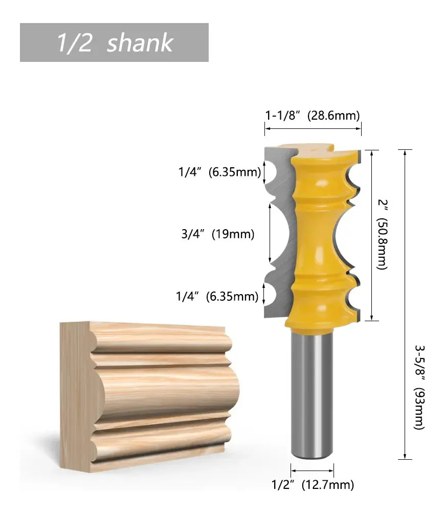 Fresa Madera Moldura Zócalo Marcos Vástago 1/2 X 50.8mm