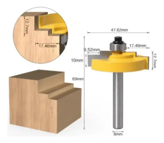 Fresa Madera Moldura Zócalo Marcos Vástago 8mm Escalonada