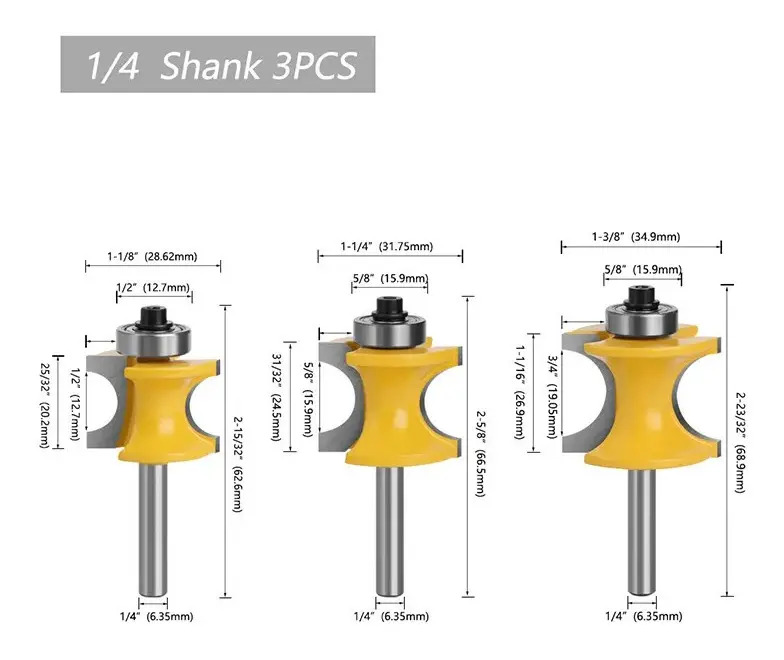 Fresa Madera Rodón Toma 1/4 Set 3pcs