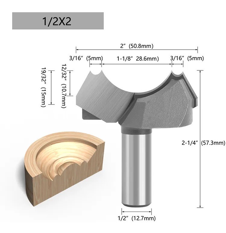 Fresa Madera Vaciado Toma 1/2 Fondo Bola