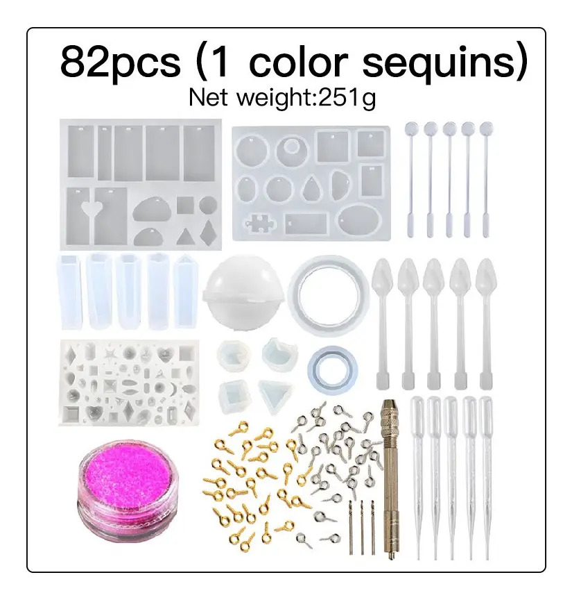 Kit Molde Silicona Resina Uv Inicio Collar Llavero Aros 82pc
