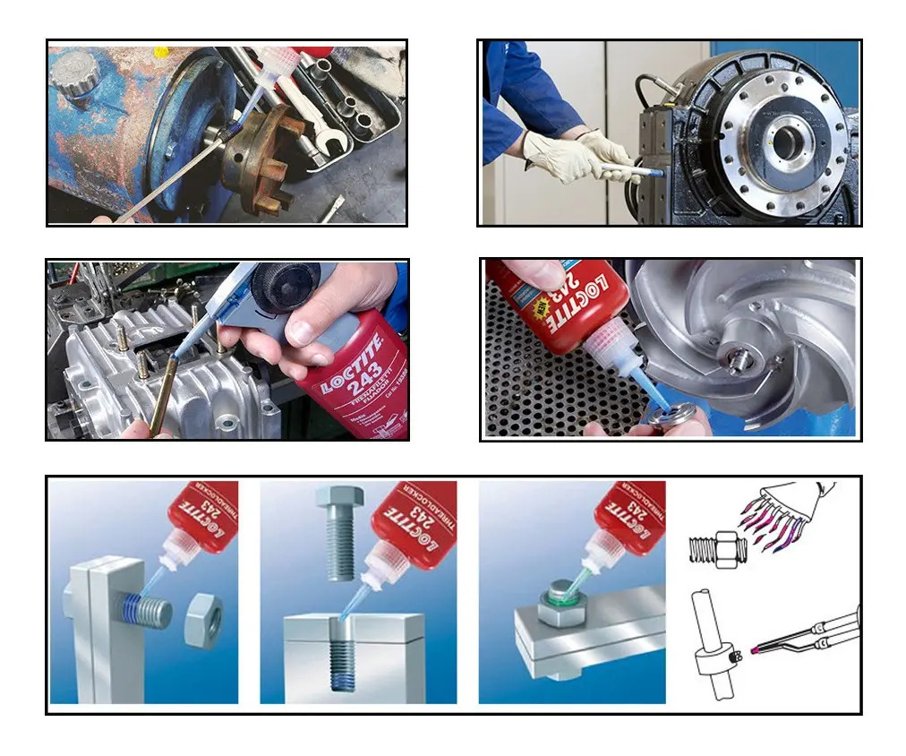 Adecuado para la mayoría de superficies metálicas y fácil de desmontar. Utilizado para bloquear y sellar roscas M2, M12.