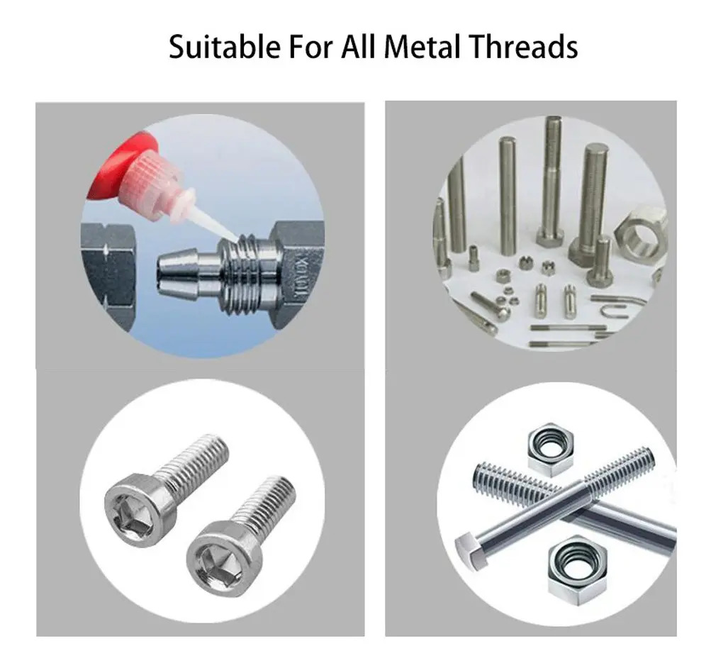 Características del producto: Este producto bajo la condición de aislamiento de aire en los dos juntos entre el curado de metal, especialmente adecuado para superficies inertes para evitar golpes y vibraciones causados por aflojamientos y fugas.