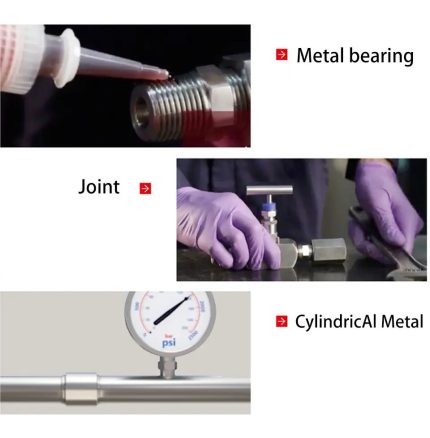Características del producto: Este producto bajo la condición de aislamiento de aire en los dos juntos entre el curado de metal, especialmente adecuado para superficies inertes para evitar golpes y vibraciones causados por aflojamientos y fugas.