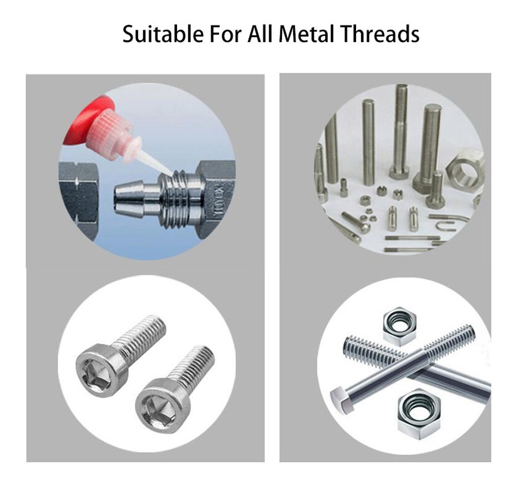 El sello de bloqueo para roscas de hasta M20 es un agente de bloqueo de rosca de bloqueo permanente con excelente resistencia al óxido y la corrosión en entornos químicos extremos