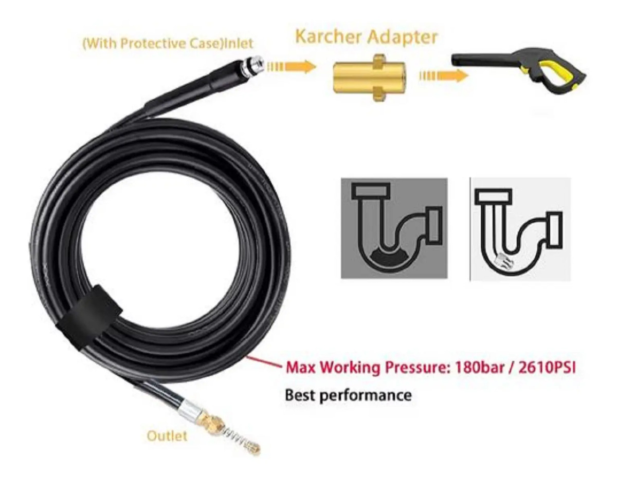 Manguera alta presión (20mts) para hidrolavadora karcher K2 – K7, Ideal para destape a presión, drenaje de alcantarillados y tuberías.