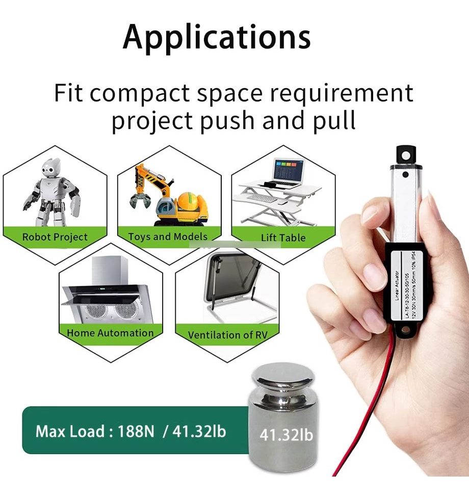 Mini Actuador Lineal Dc 12v 188n Extensión 7.5cm. Largo 13cm