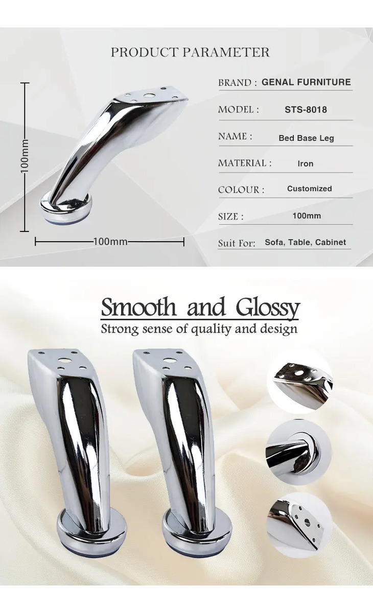 4 Patas Estilo Curvo. 10cm de alto por 5 de Diámetro, en Acero Cromado y base de pvc.