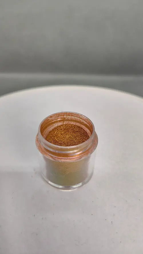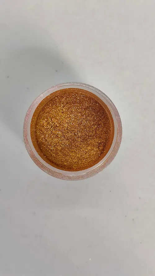 Elegancia y brillo en un solo pigmento: de un delicado dorado champaña pasa a un verde vibrante, ideal para acabados únicos y sofisticados.