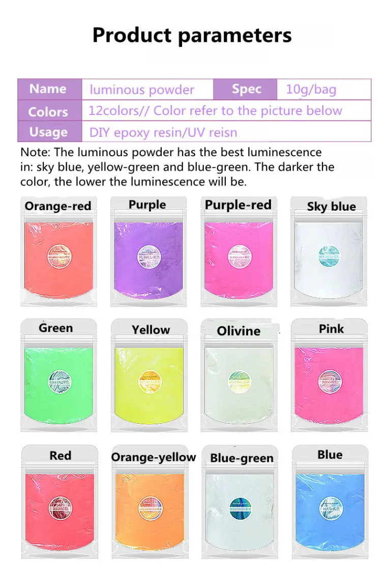 Pigmento Polvo Resina Uv 12 Colores Fluorescente 10g C/u