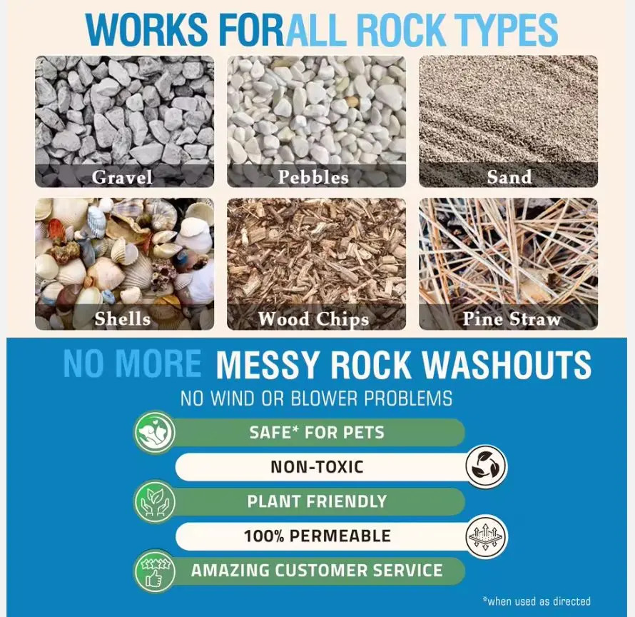 Diseñado para ambientes exteriores, este pegamento anti amarilleo resistente a los rayos UV garantiza una aplicación sin esfuerzo como una carpeta y un estabilizador fuertes. Funciona a la perfección con grava, granito y mantillo, ofreciendo una cobertura confiable del suelo para pasarelas, patios, entradas de vehículos y paisajes de jardines sin esfuerzo.