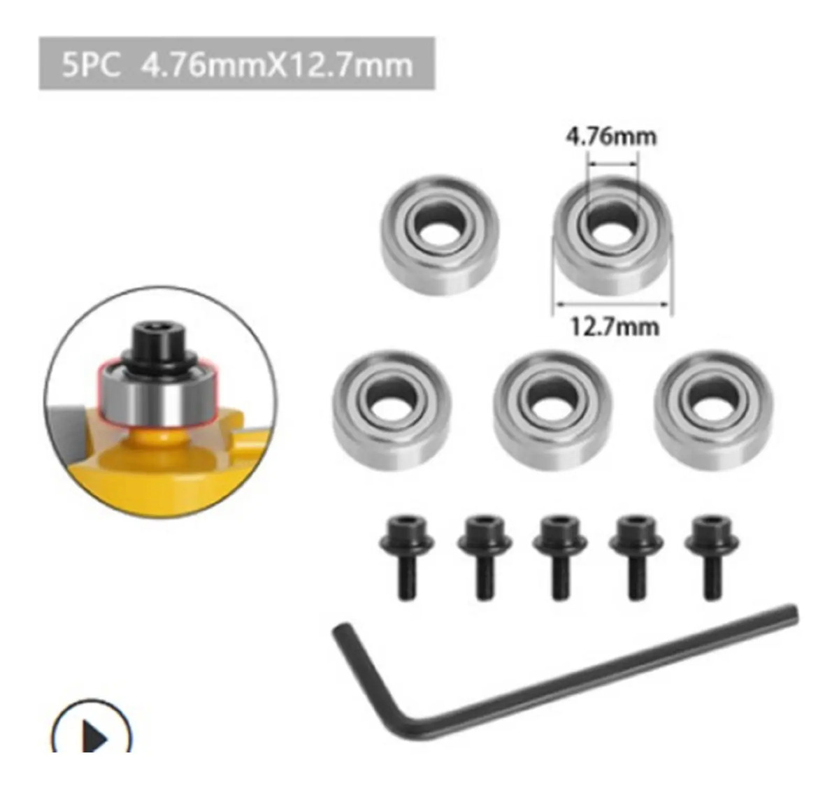 Rodamiento Fresa Madera 4.75 X 1/2 5un Con Llave Y Tornillos