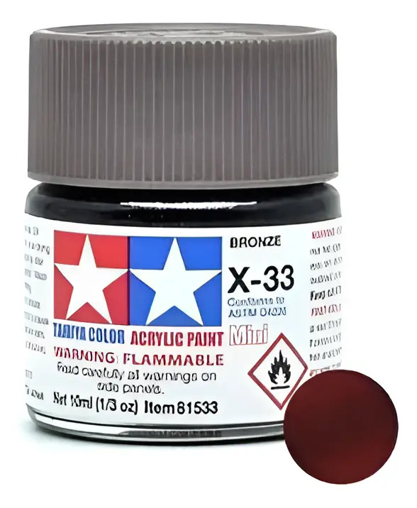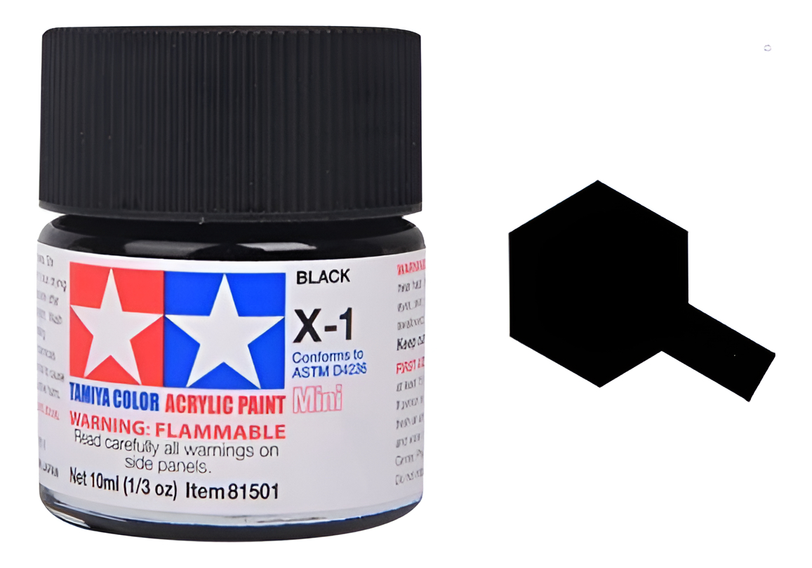 Las pinturas acrílicas Tamiya Color están hechas de resinas acrílicas solubles en agua y son excelentes para pinceles o pintura en aerosol. Estas pinturas se pueden usar en resinas de estireno, poliestireno, madera, además de todos los plásticos de modelo común. La pintura cubre bien, fluye suavemente sin rubor ni decoloración, y se puede mezclar fácilmente. Cada botella de la Mini serie de pintura acrílica Tamiya Color contiene 10ml de pintura.