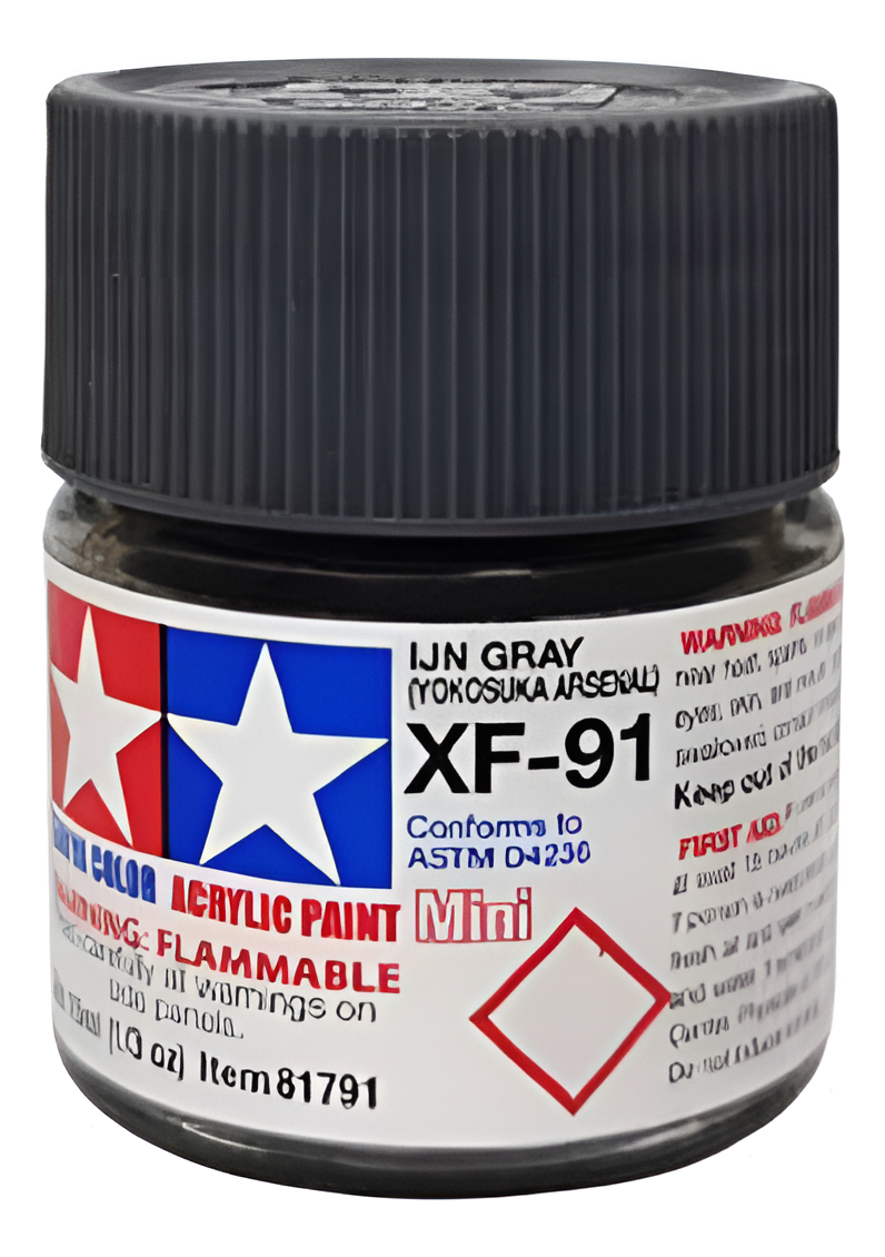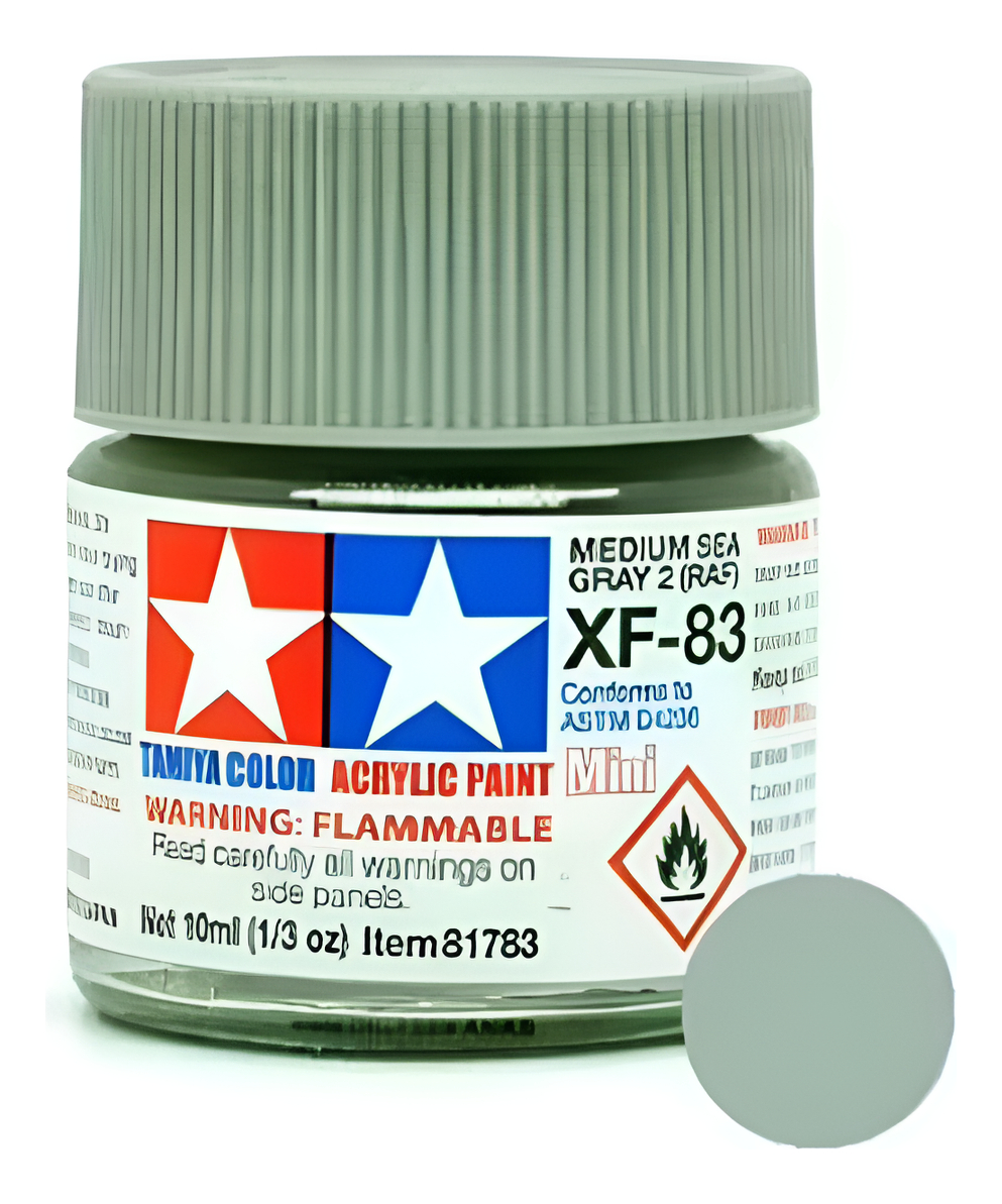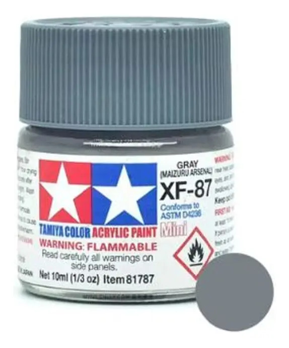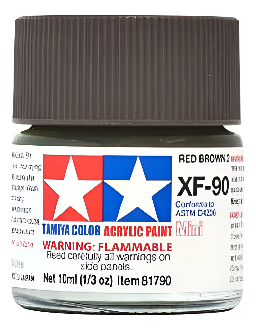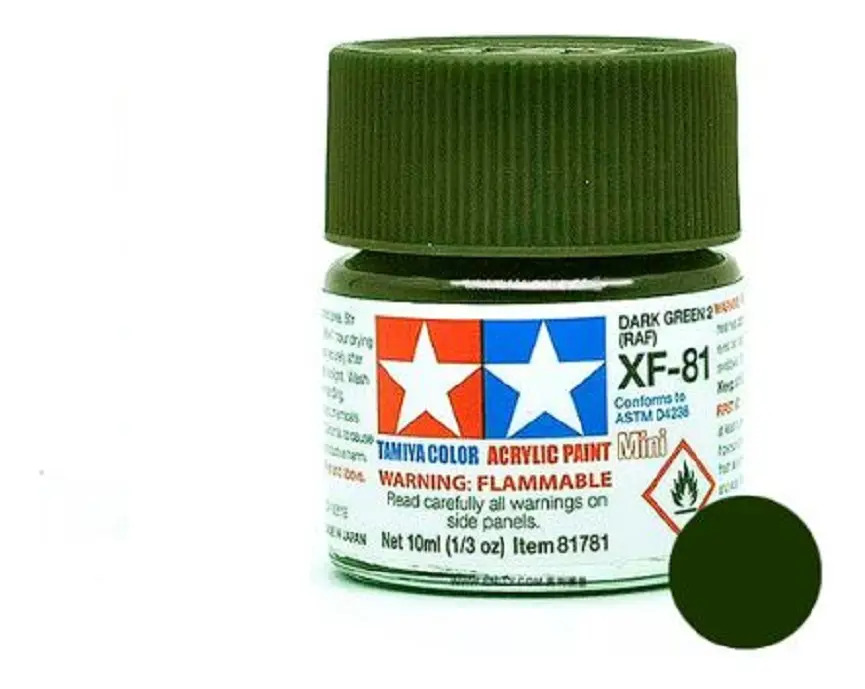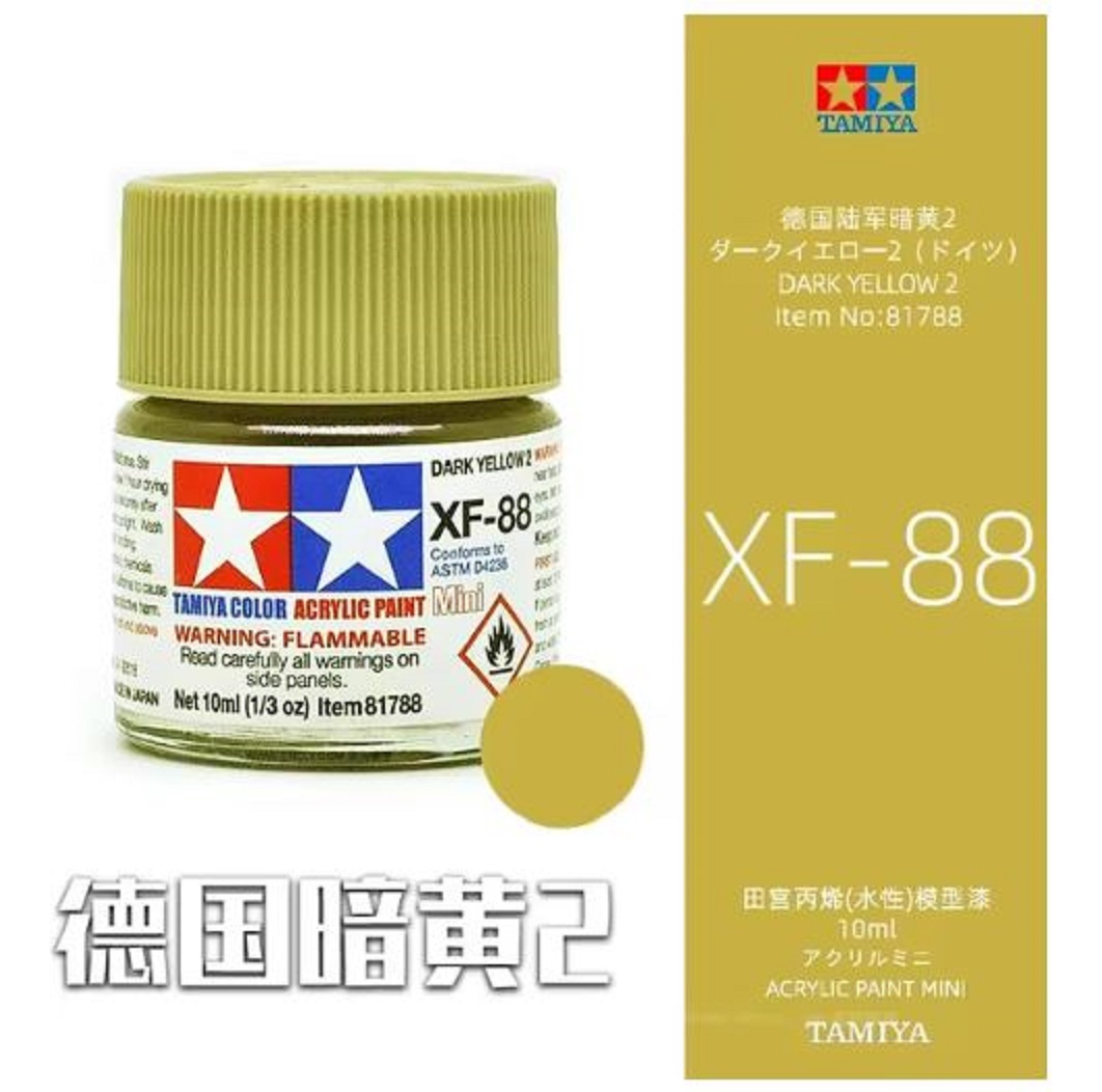 Las pinturas acrílicas de Tamiya están hechas de resinas acrílicas solubles en agua y son excelentes para pintar con pincel o aerógrafo y son completamente seguras. Estas pinturas se pueden utilizar en espuma de poliestireno, madera y plásticos modelo más comunes. La pintura cubre bien, fluye suavemente sin rubor ni decoloración, y se puede mezclar fácilmente. La pintura se puede lavar con agua normal si se hace antes de secar.