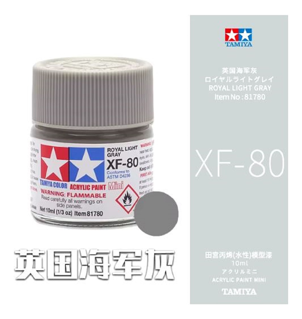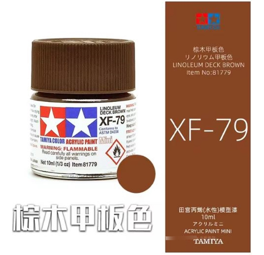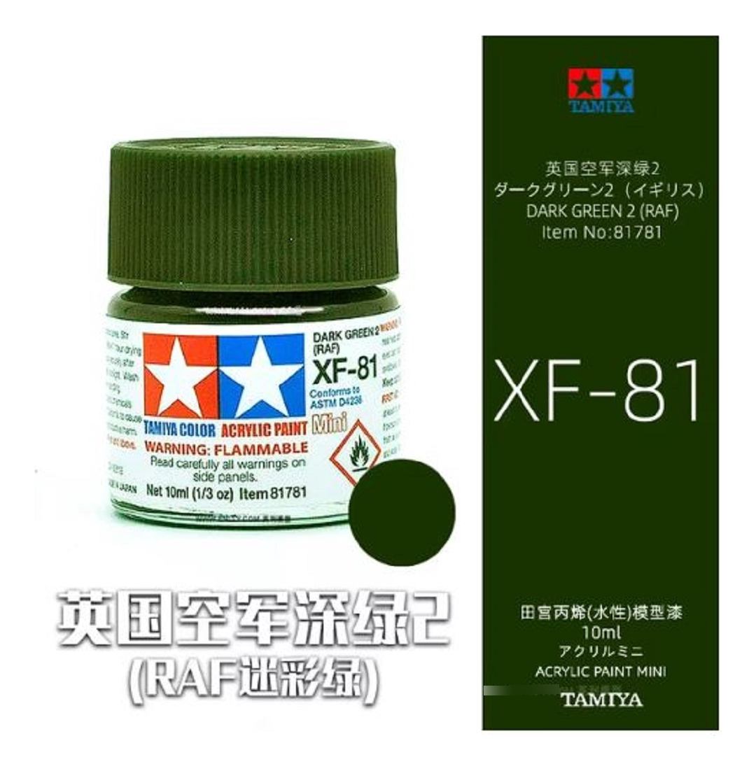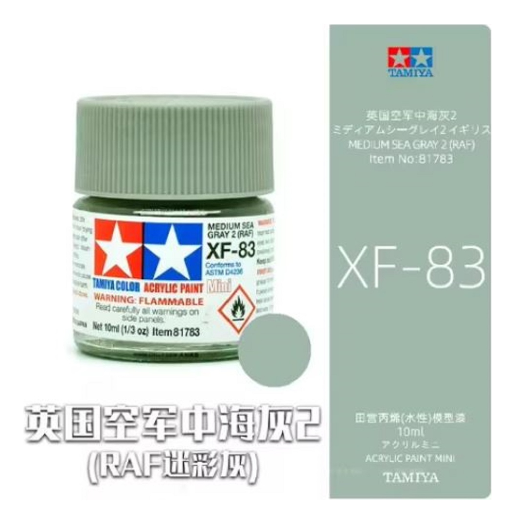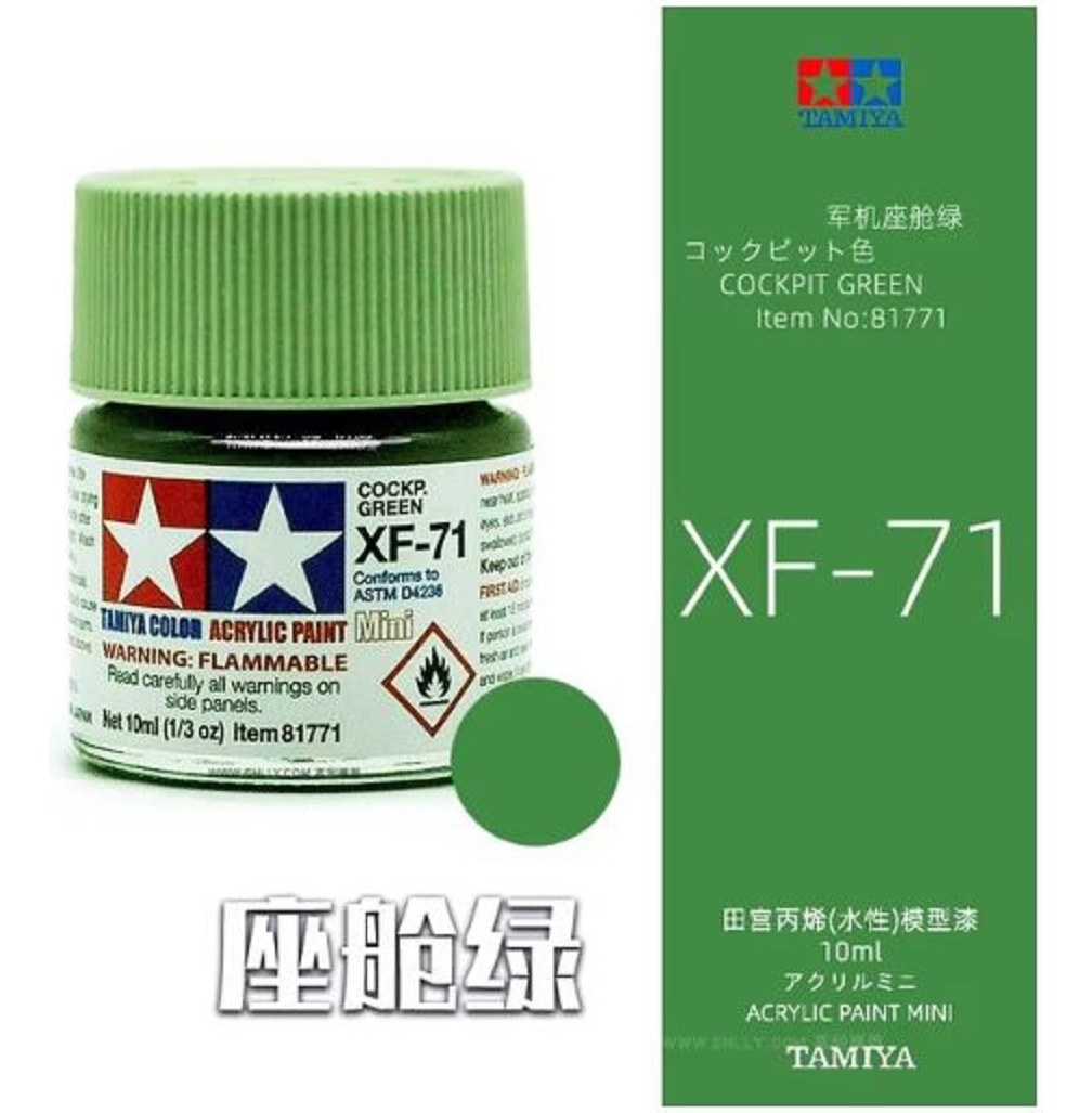 Las pinturas acrílicas de Tamiya están hechas de resinas acrílicas solubles en agua y son excelentes para pintar con pincel o aerógrafo y son completamente seguras. Estas pinturas se pueden utilizar en espuma de poliestireno, madera y plásticos modelo más comunes. La pintura cubre bien, fluye suavemente sin rubor ni decoloración, y se puede mezclar fácilmente. La pintura se puede lavar con agua normal si se hace antes de secar.
